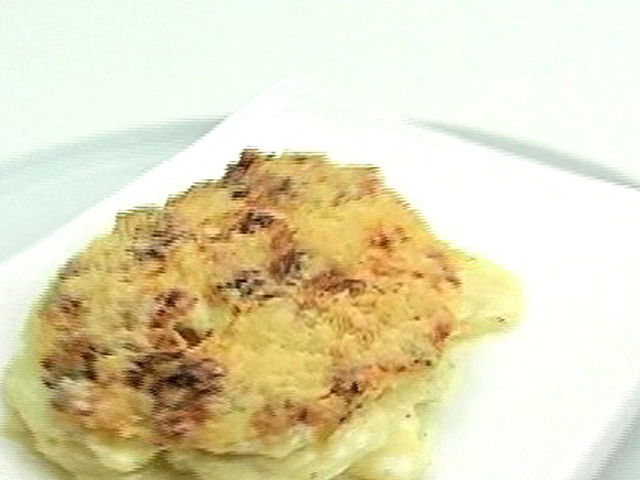 Блюдо из картофеля.Состав:картофель — 4 штуки;сливки — 1 стакан;масло — 30 гр;сыр эмменталь — 50-100 гр;соль, черный перец.